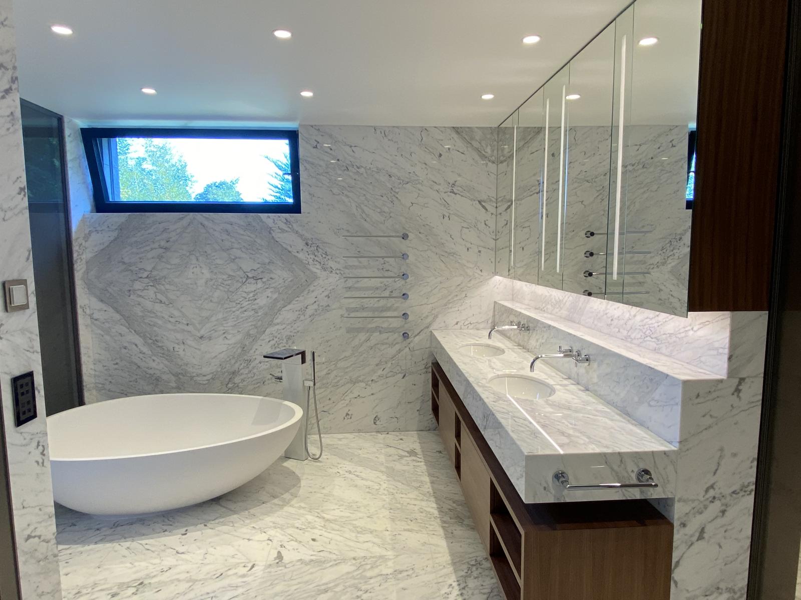 Construction de sept villas contiguës de haut standing avec piscine intérieure, extérieure et garage souterrain. L'ensemble des villas bénéficie de locaux de réception et de détente tels que salon, bibliothèque, salle de home cinéma, salle de jeux et locaux privés, chambres, fitness et ascenseurs desservant les différents niveaux.