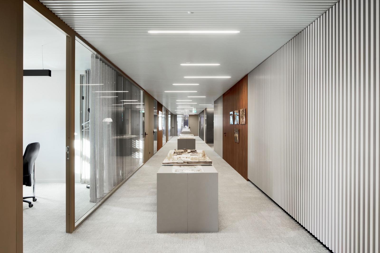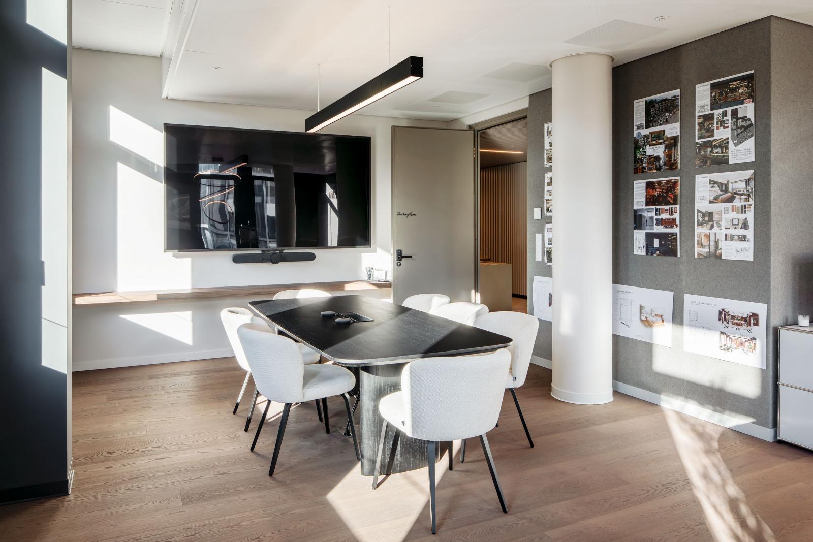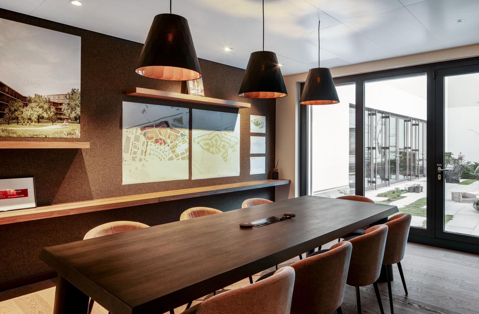 Aménagement des bureaux développés par Urban Project SA et CCHE SA. Le plateau de 1'160m2 comprend un open-space, des bureaux fermés, des salles de conférences, une cafétéria et des sanitaires.